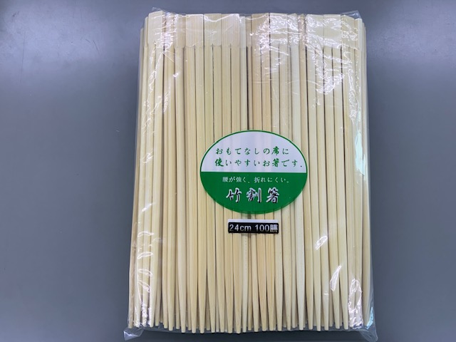 | W-358 | 竹割箸 24㎝ 100膳 | 19×4×24 | 30×1 | 4903673610490 |
