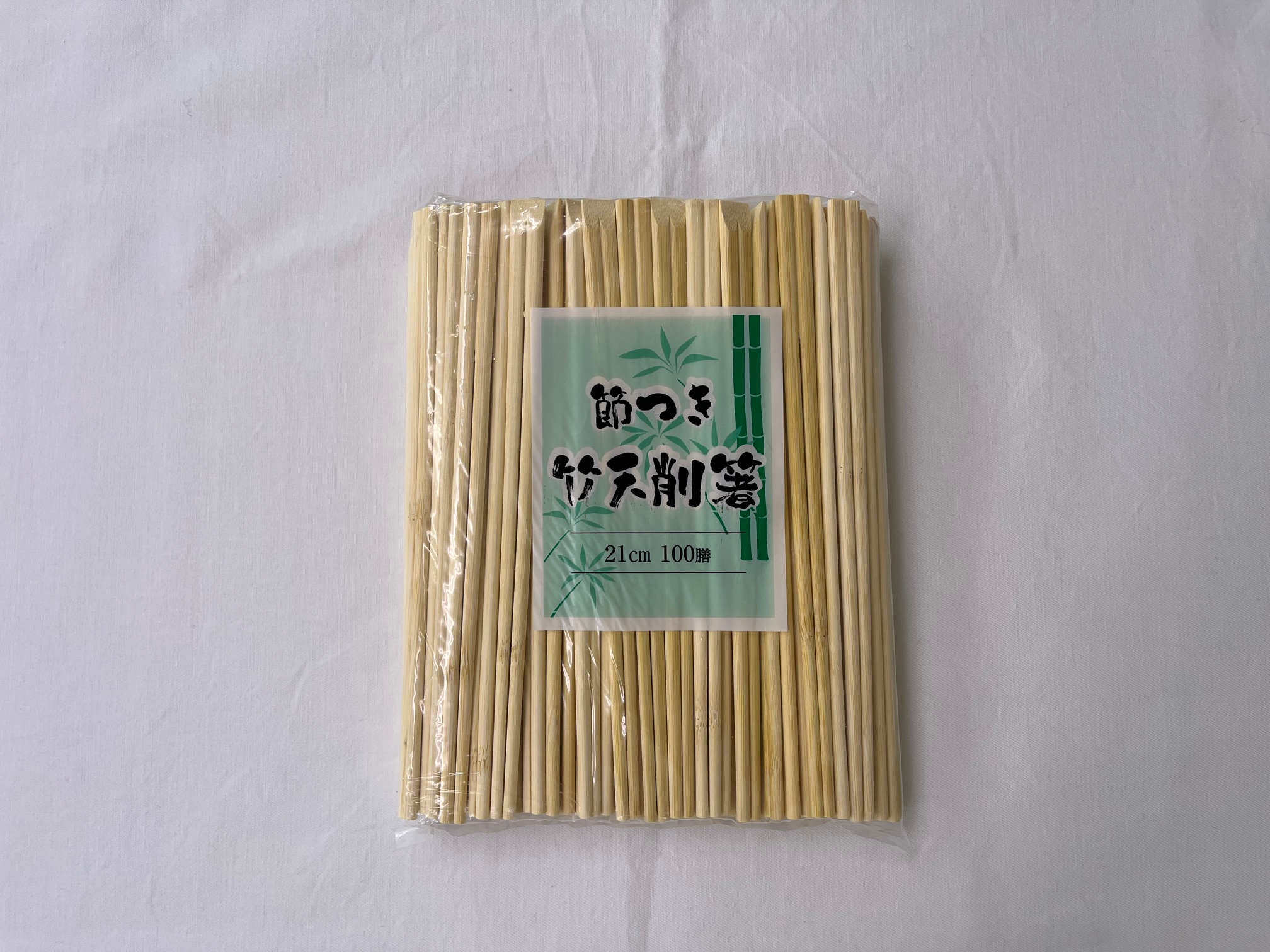 | W-422 | 節つき竹天削箸 21㎝ 100膳 | 16.5×4×21 | 30×1 | 4903673617437 | |