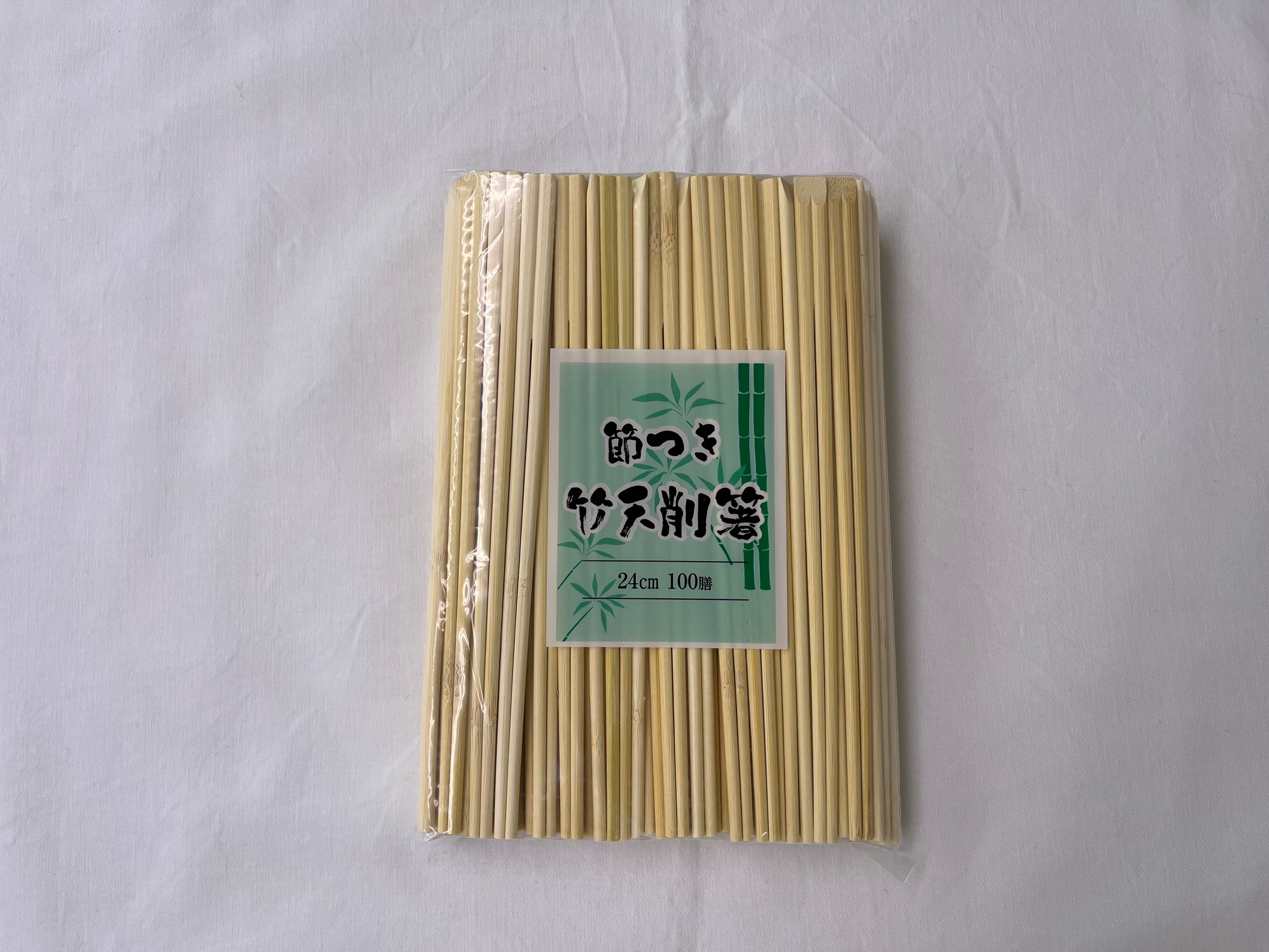 | W-423 | 節つき竹天削箸 24㎝ 100膳 | 16.5×4×24 | 30×1 | 4903673617444 |